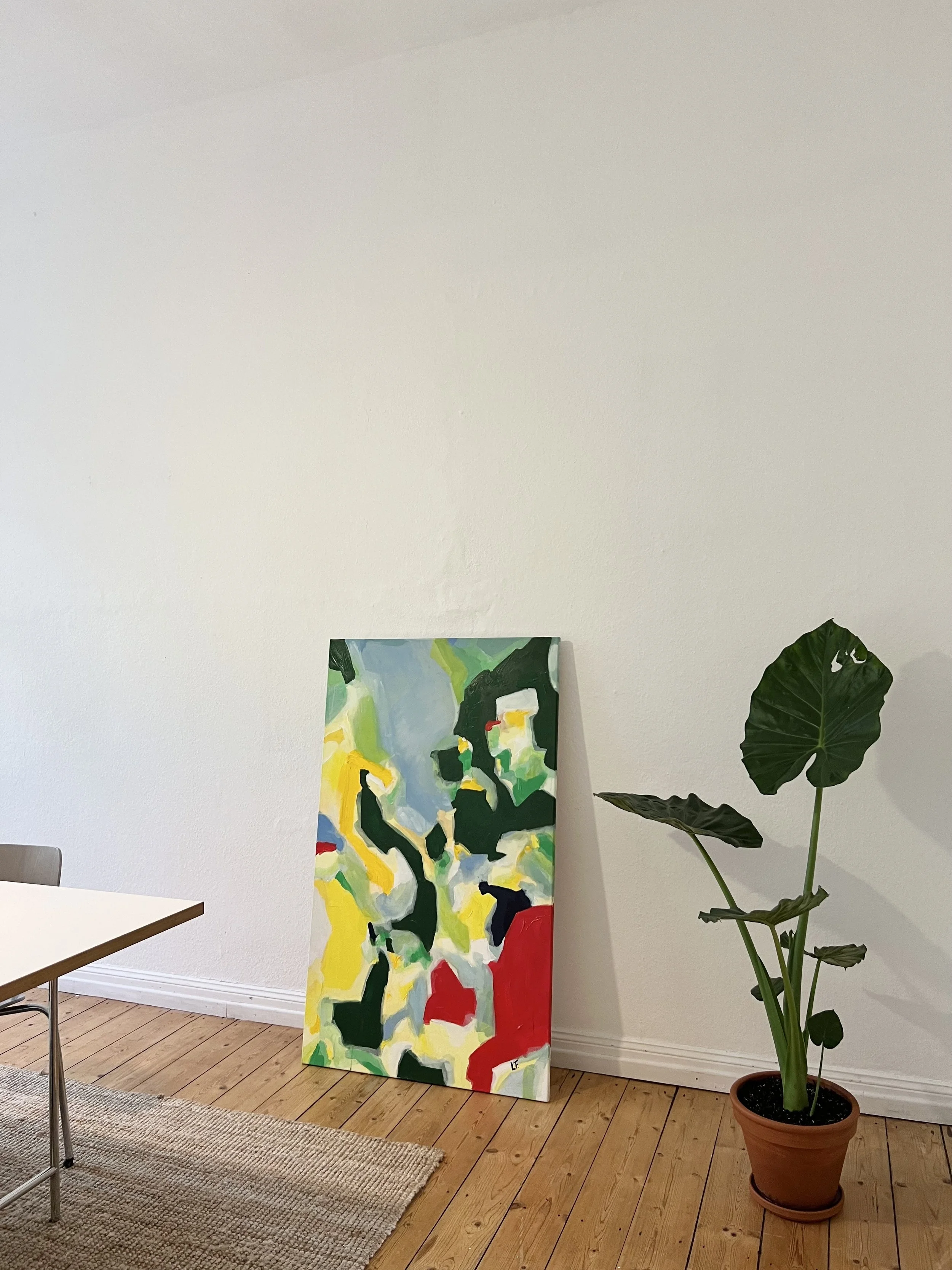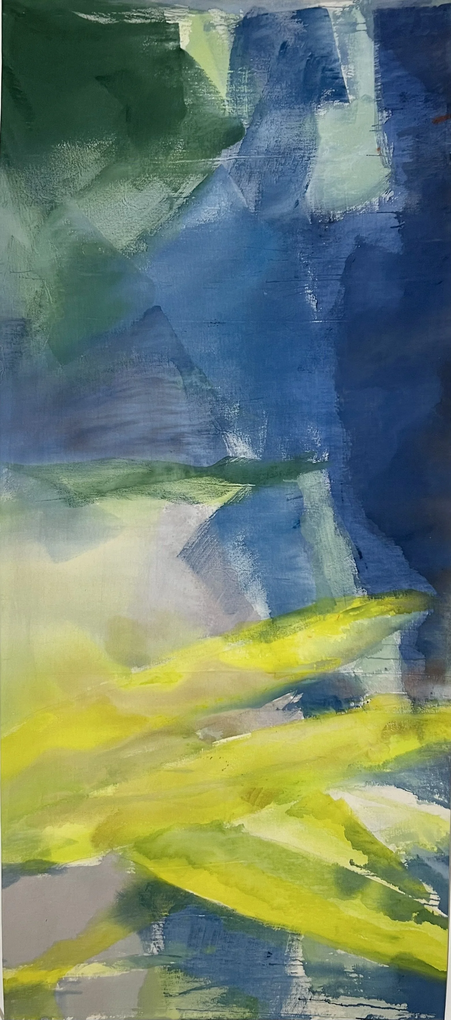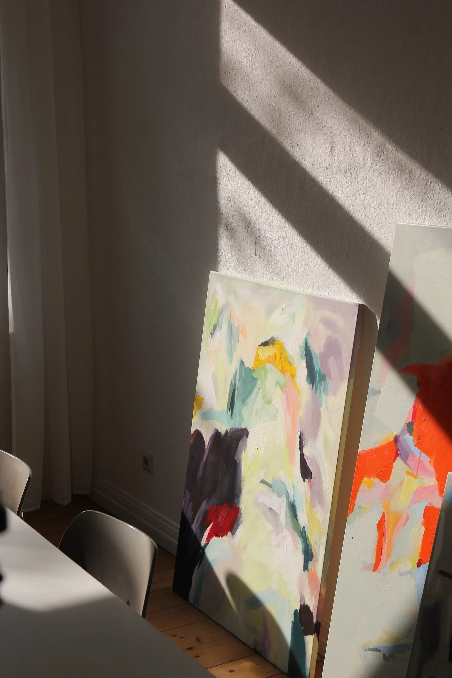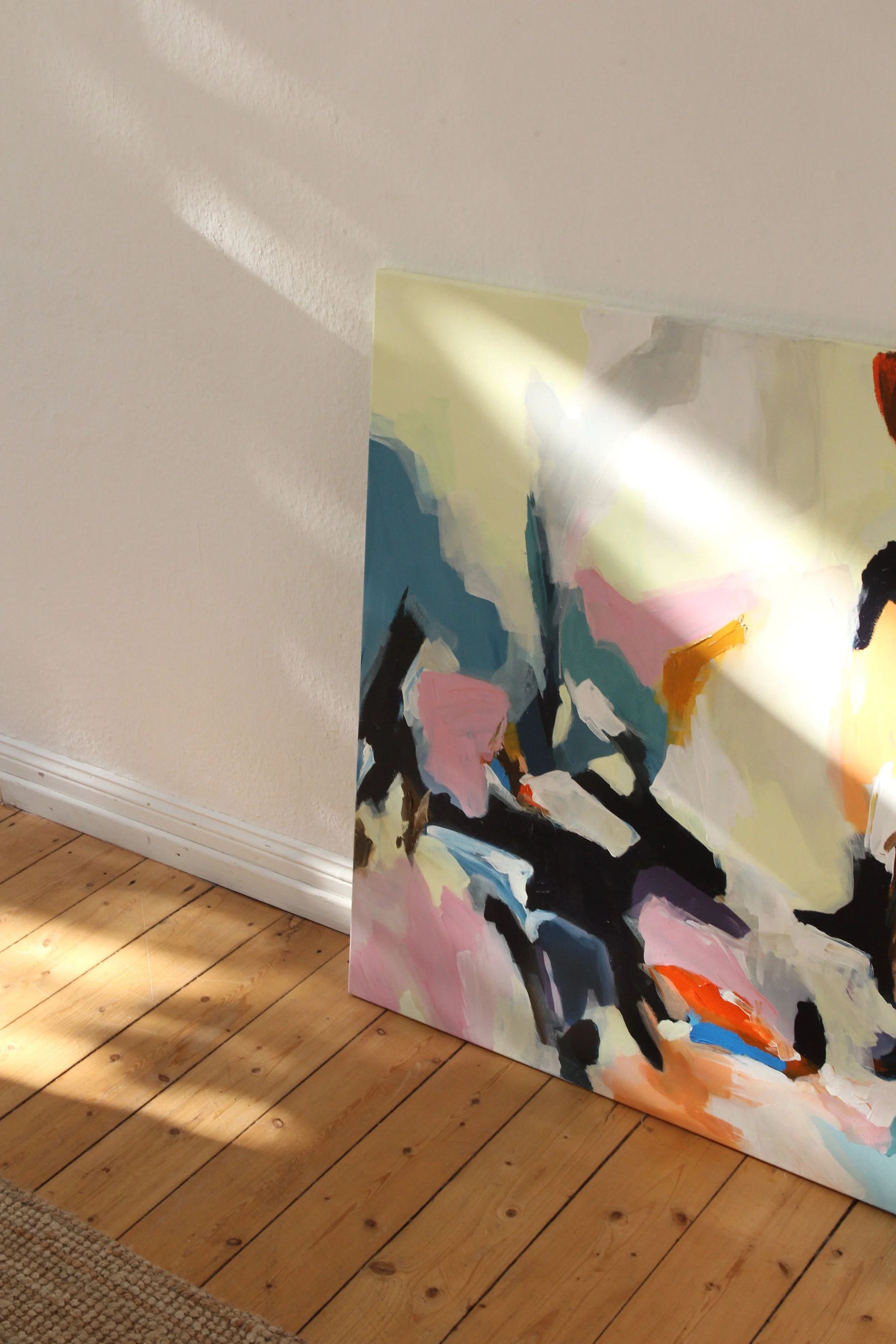 Bei diesen Arbeiten geht es um das Spiel zwischen tiefen und hellen Farbtönen, harten und weichen Übergängen und die daraus entstehende Dynamik.